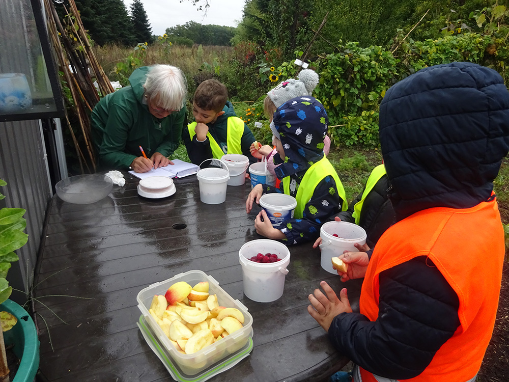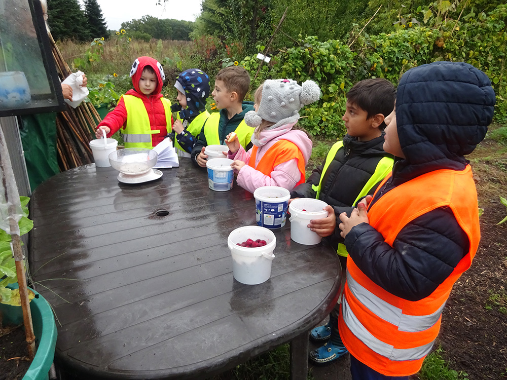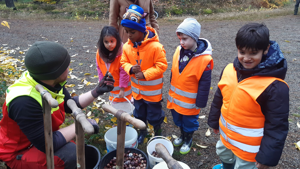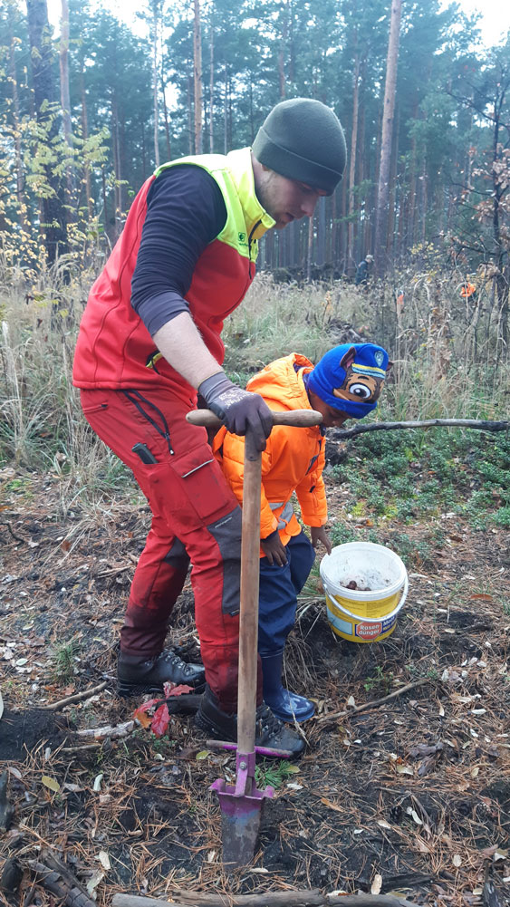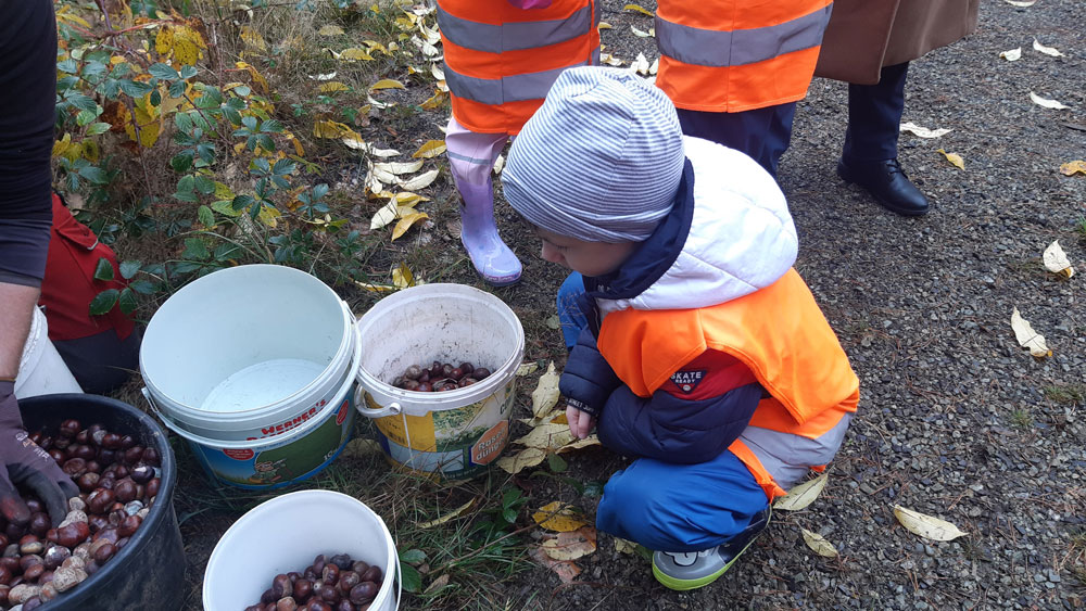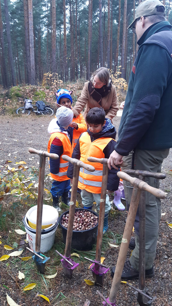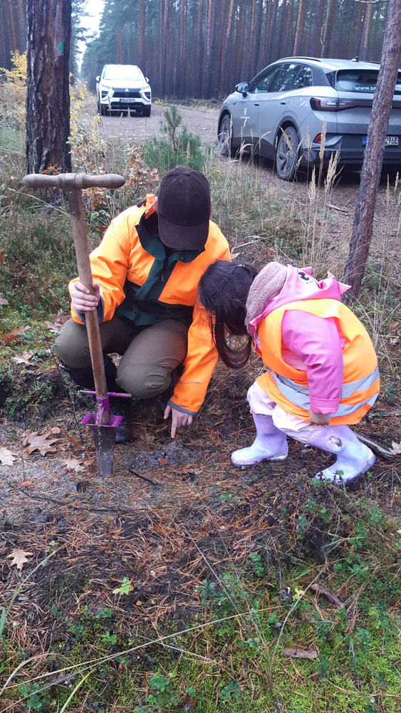 Im 10. November 2025 durften vier Kinder gemeinsam mit Revierförster Herrn Conrad im Wald aktiv werden – sie steckten Eicheln und Kastanien in die Erde